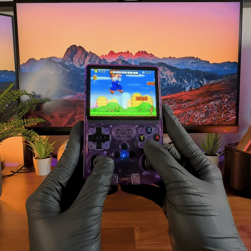 The Retro Handheld Gaming Console features a 3.5 inch IPS display, delivering vibrant colors, sharp resolution, and immersive visuals.